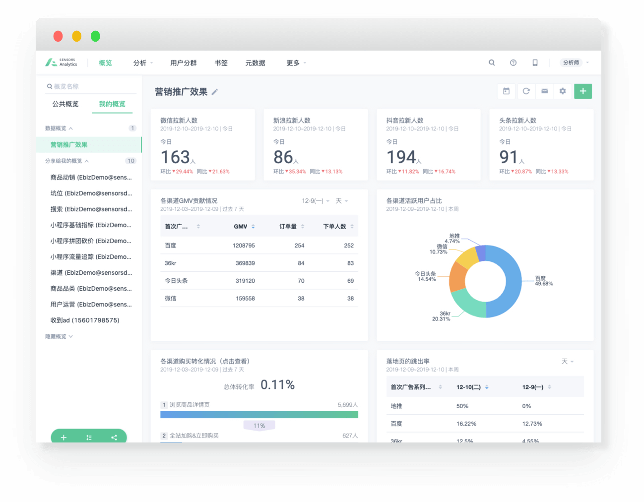 - 追蹤新用戶的渠道來源,用數據直觀評估渠道拉新能力