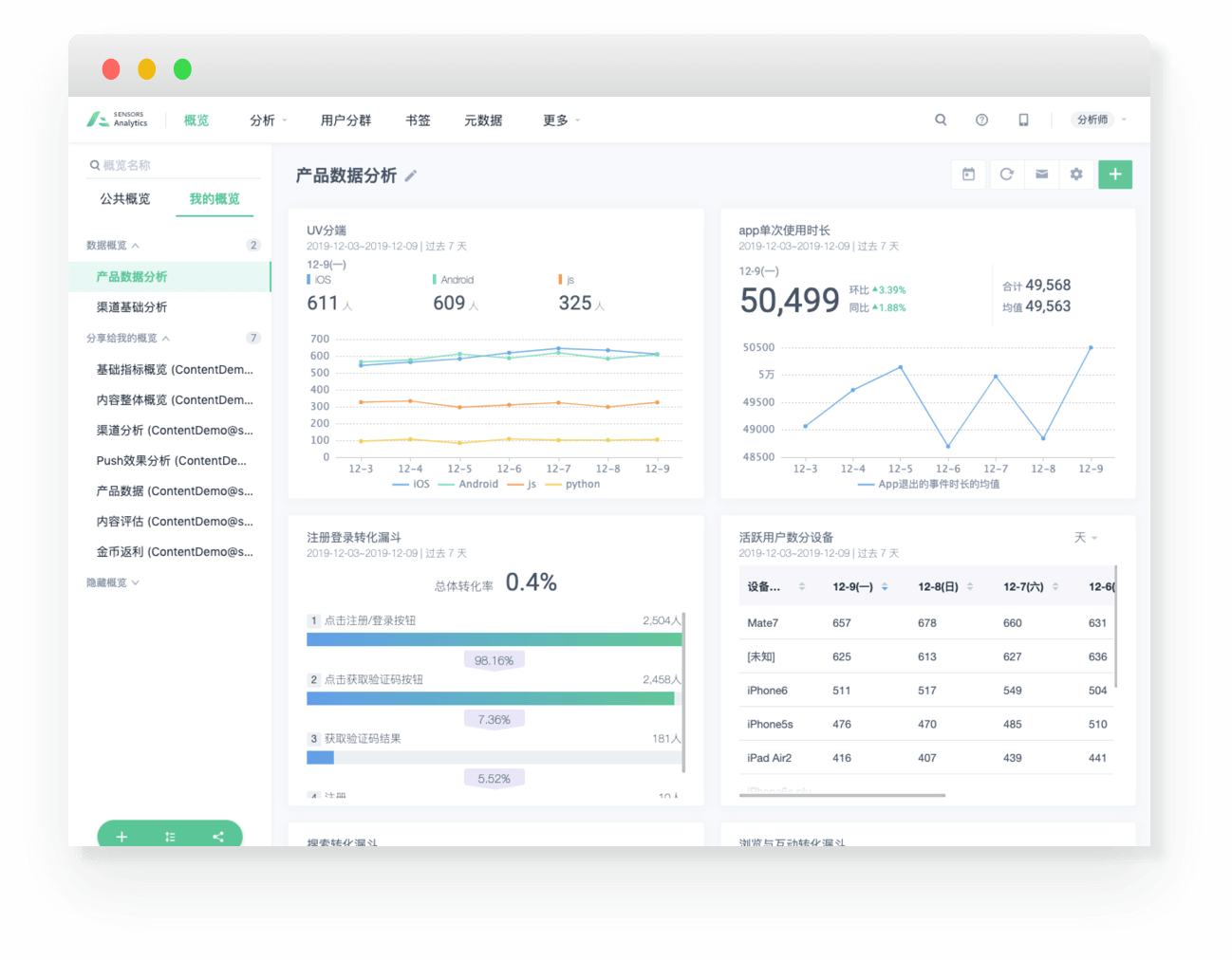 追蹤用戶行為,分析核心流程轉化,快速驗證改版方案,讓新用戶更多留存,讓老用戶更多消費。