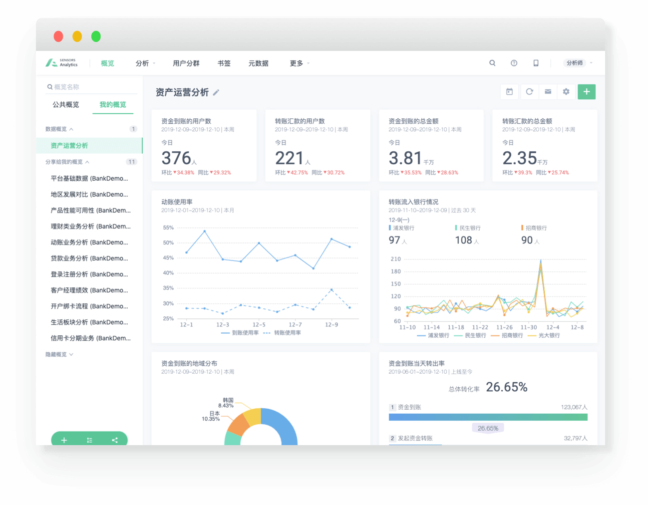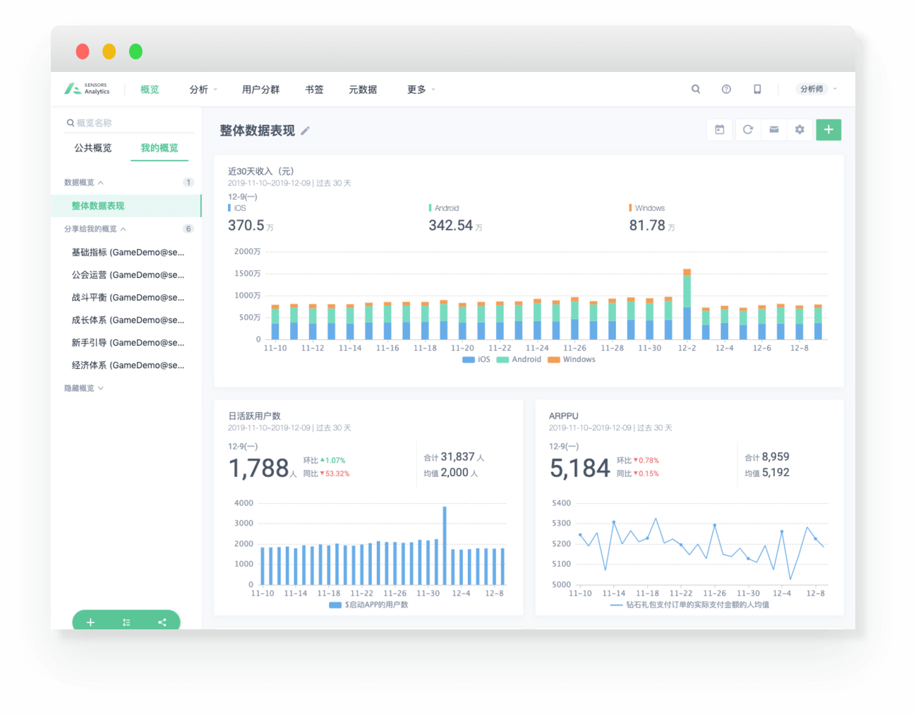 - 一頁概覽,實時數據,全局反映公司不同團隊和業務線的運營情況,發現問題,及時決策。