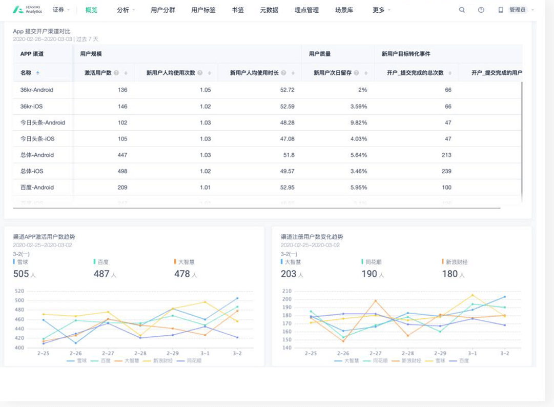 東門提供完善的渠道追蹤行業(yè)資訊,不僅能夠?qū)崿F(xiàn)線上 Web/H5、APP 和小程序端的渠道追蹤,也可以通過二維碼標記線下活動的等方式實現(xiàn)對線下渠道/營業(yè)部/員工的有效追蹤。 便捷的渠道管理和一鍵生成規(guī)模質(zhì)量雙評估報表功能,有效提升市場投放人員的工作效率,幫助業(yè)務人員從多維度分析渠道價值,提升投放效果,為企業(yè)帶來優(yōu)質(zhì)目標群體。同時反推渠道質(zhì)量與渠道特點,優(yōu)化投放策略。