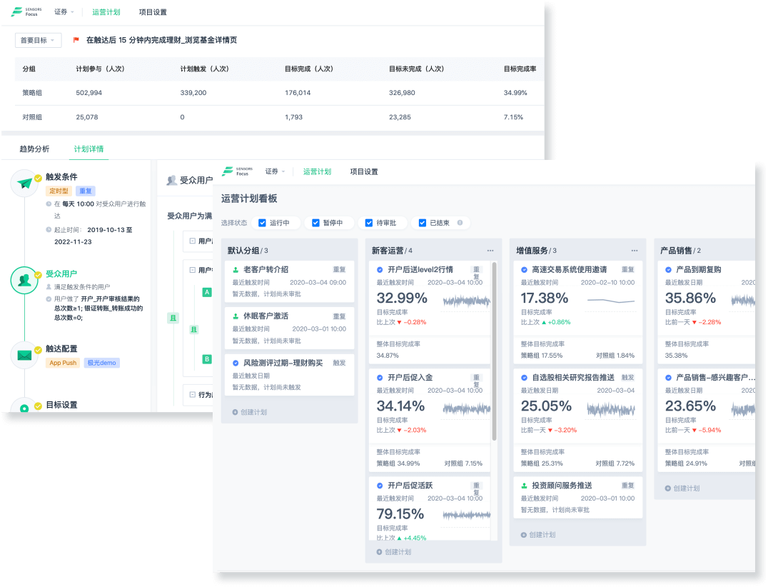 針對營銷活動這一重點場景,通過隨行付對客群進行精準篩選、活動計劃快速創(chuàng)建、效果實時分析再迭代,支持對接主流觸達通道,以多觸達方式如 APP Push、短信推送、郵件等自定義推送方式銜接運營計劃,提高銀聯(lián)Pos機營銷活動效率。 打通線上線下聯(lián)系。通過與券商自有 CRM 對接,使用銀聯(lián)商務客戶行為,收集銷售線索并發(fā)送到 CRM 生成任務,后續(xù)觀察銷售線索完成情況。線上線下動作形成閉環(huán)。